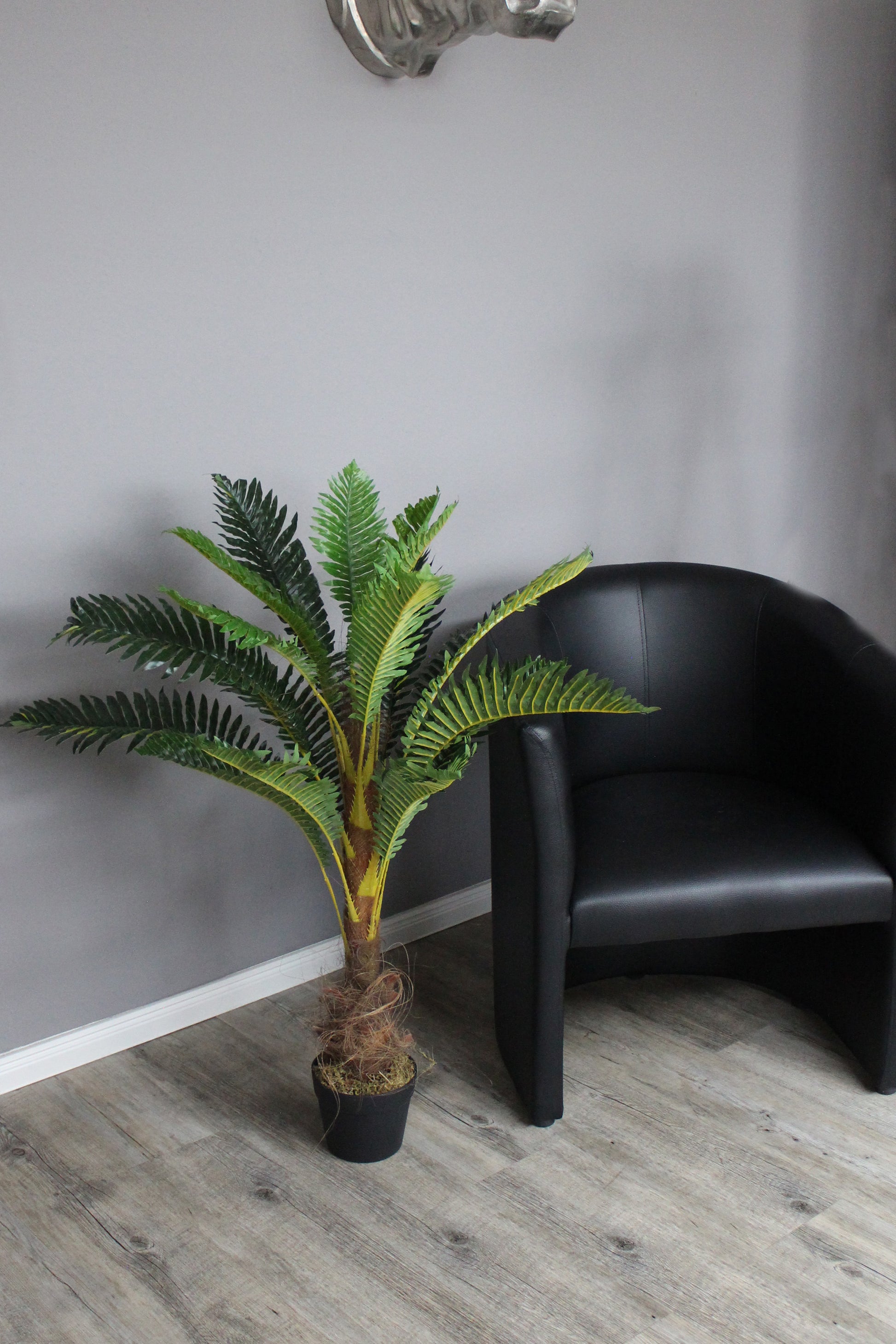 Diese sehr natürlich wirkende Kunstpalme hat eine Höhe von ca. 100 cm und ist mit 18 formschönen Palmenwedel bestückt. Die echten Palmenfaser am Stamm lassen diese Imitation besonders echt wirken.