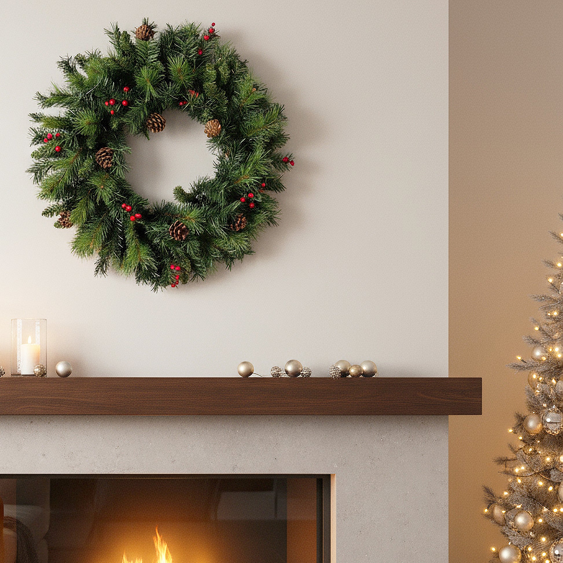 Künstlicher Weihnachtskranz mit Beeren und Zapfen – 60 cm