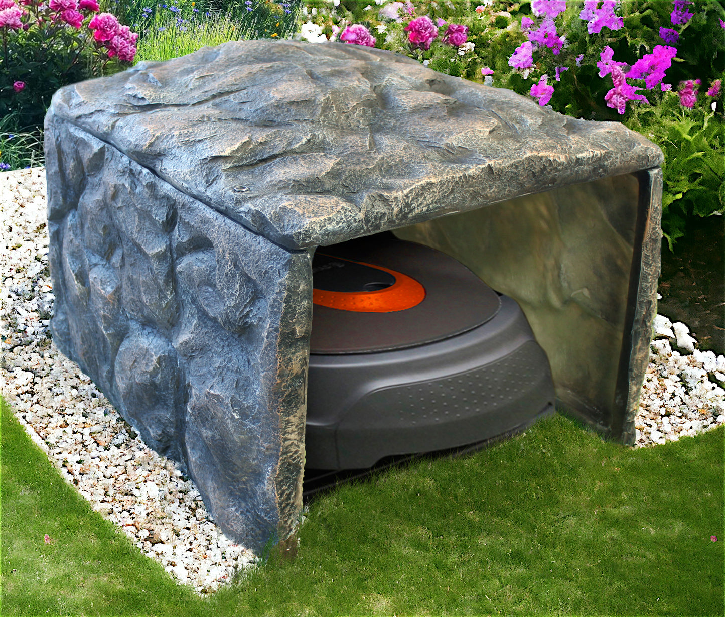 Diese Mährobotergarage lässt sich wunderbar in Ihren Garten integrieren, da sie als Felsen "getarnt" ist. Sie ist aus stabilen Kunstharz gefertigt und wetterfest. Der ideale Schutz vor Regen und Sonneneinstrahlung!