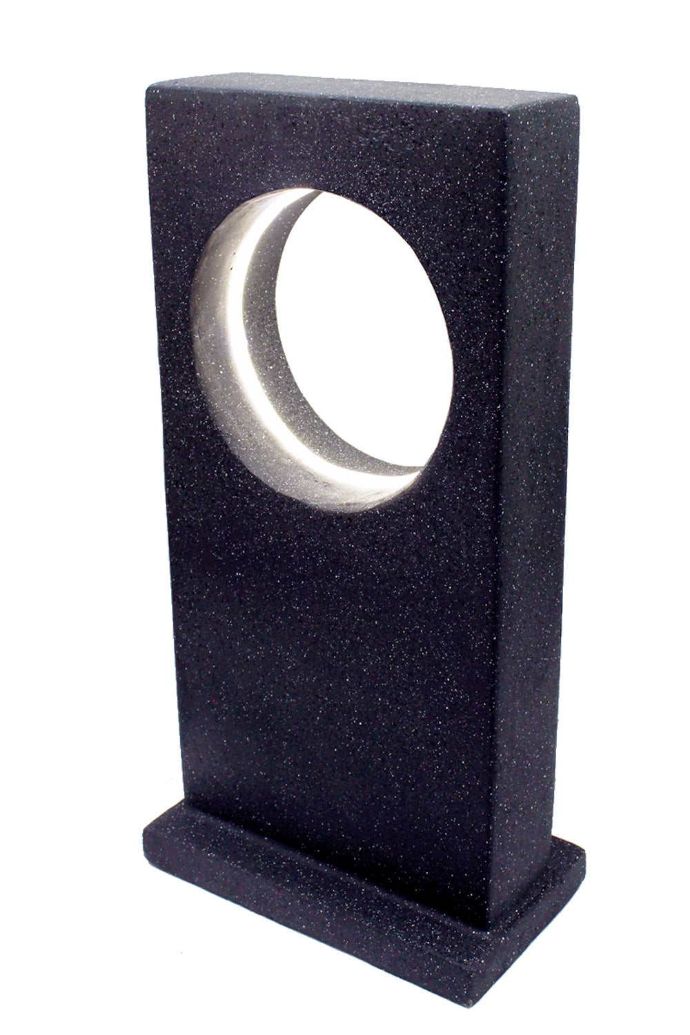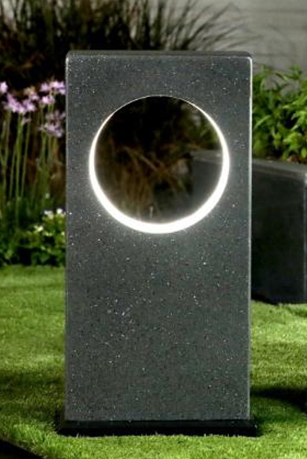 Diese moderne Gartenleuchte wird mit Solarenergie betrieben. Sie wurde aus wetterfestem Kunststein hergestellt. Im kreisrunden Ausschnitt ist eine Runde Lichtquelle eingearbeitet die diese Solarleuchte zum optischen Hingucker machen.