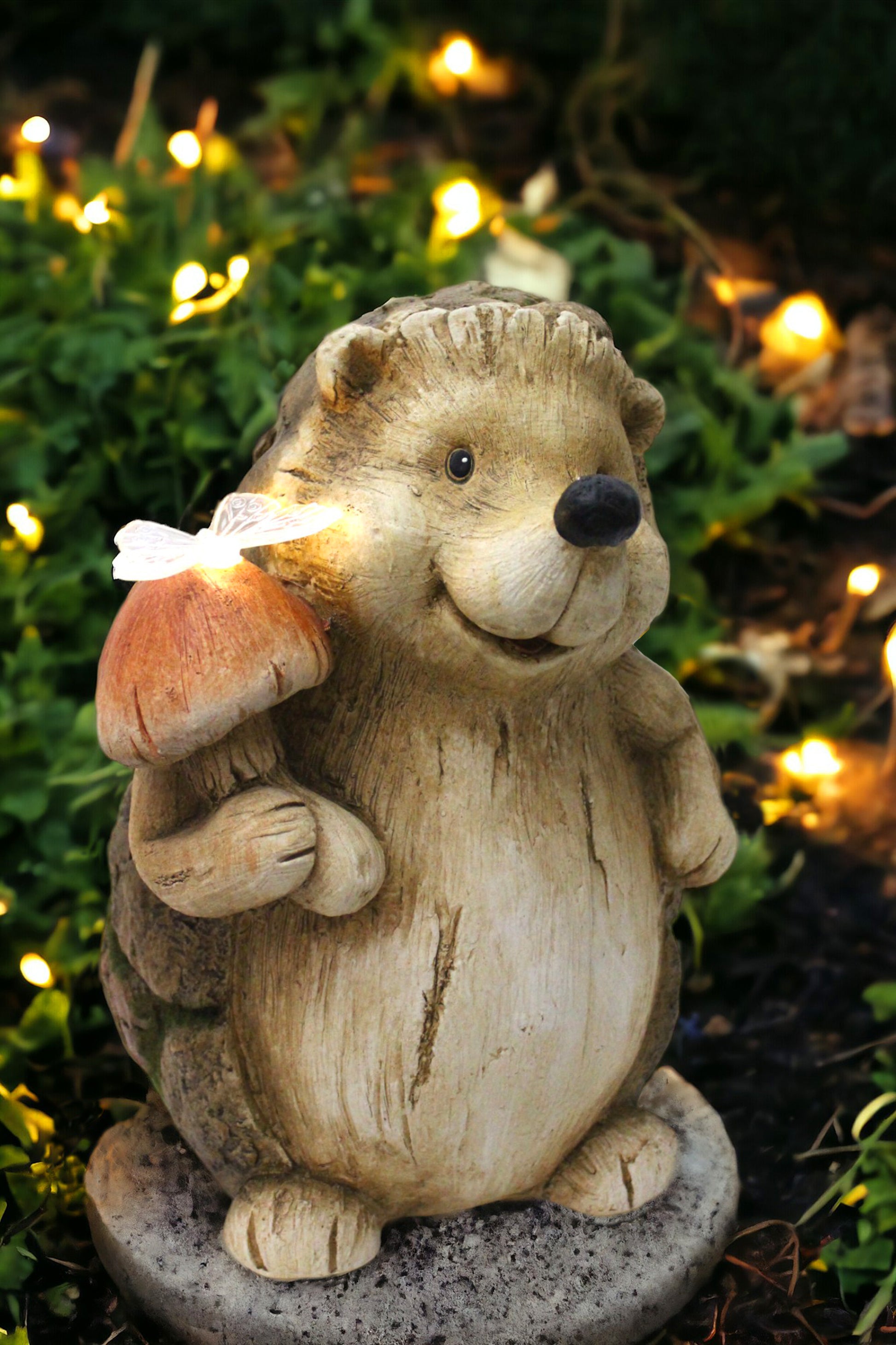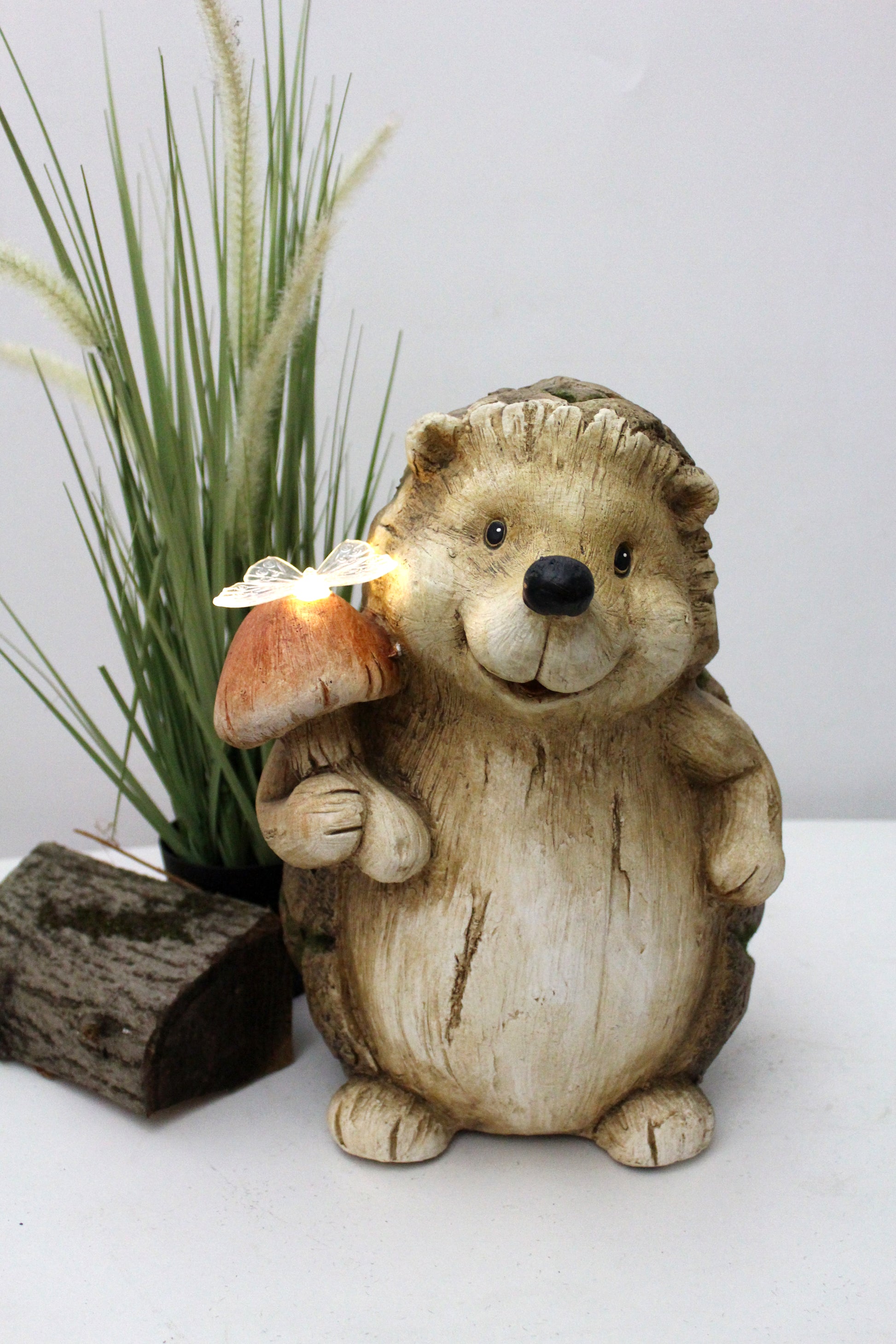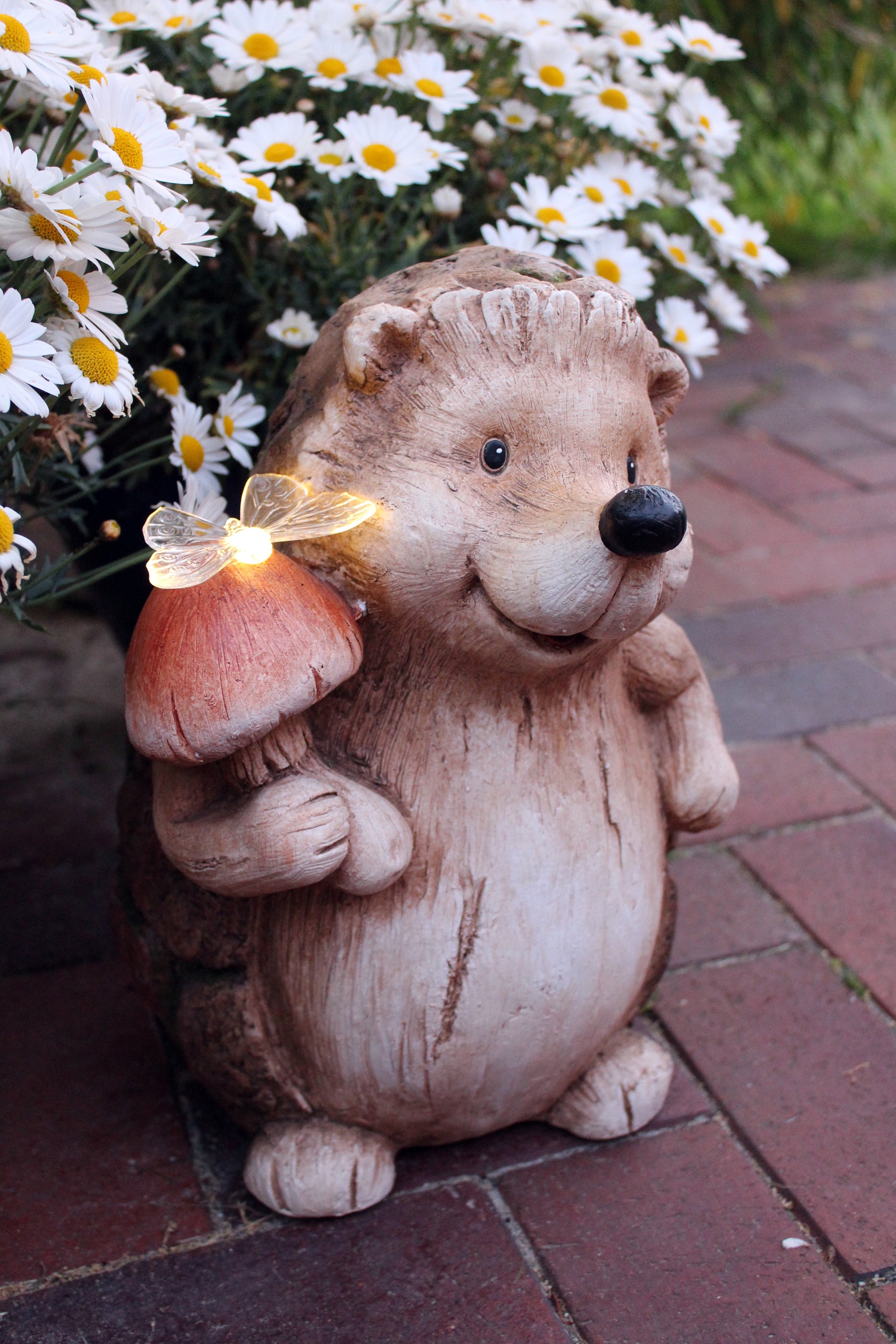 Diese sehr detailliert verarbeitete Solarleuchte ist ein echtes Schmuckstück. Der Igel ist in Holzoptik aus Kunststein hergestellt und wiegt stolze 3 kg.