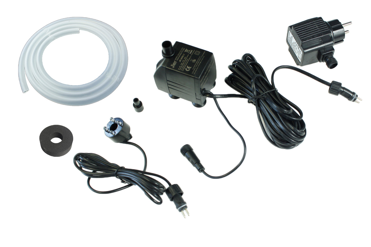 Diese Sets sind komplett mit 2m Schlauch und einer Schaumstoffdichtung, für die perfekte Fixierung der LED-Spots am Quellstein, ausgestattet.