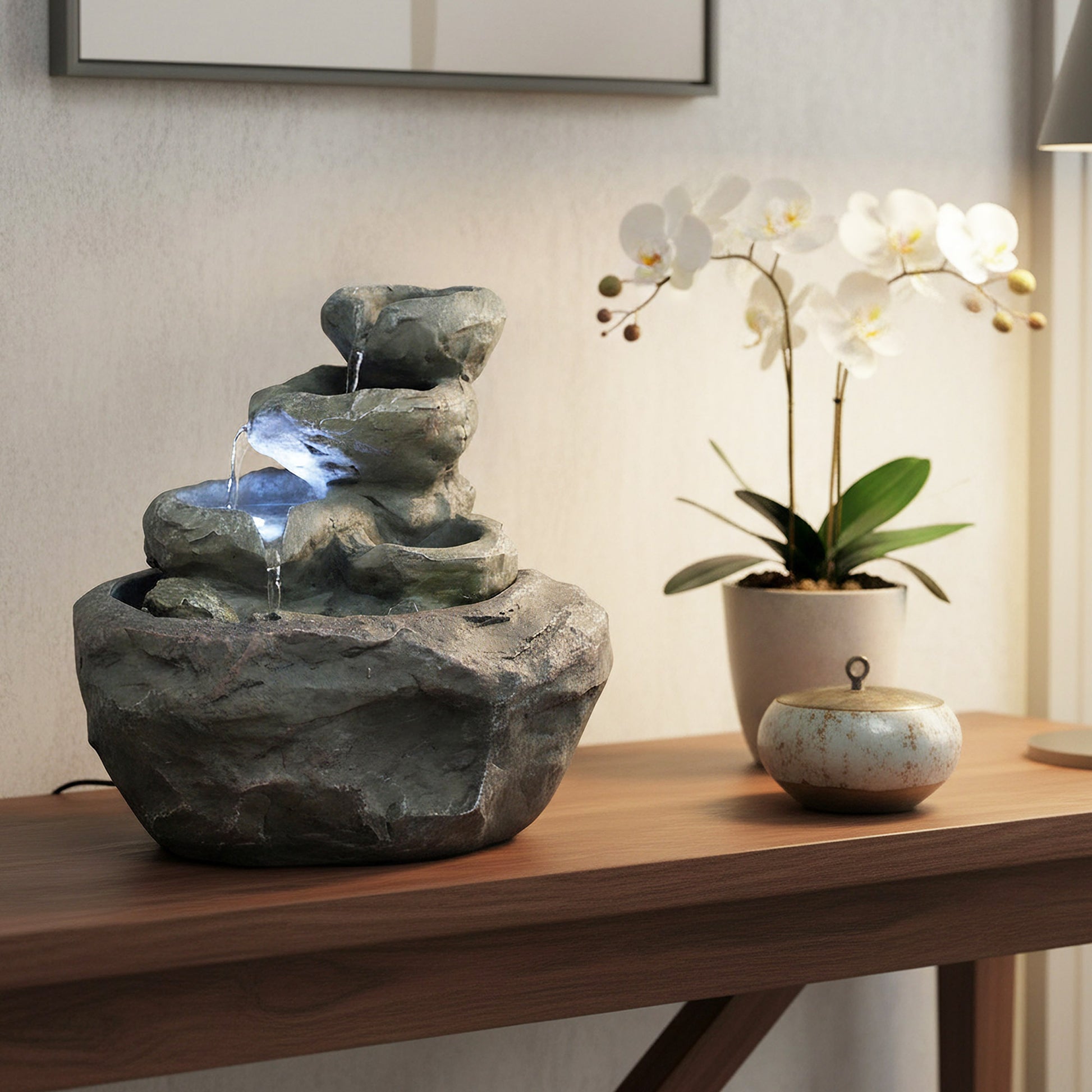 Tischbrunnen / Zimmerbrunnen aus Polyresin – Kompakter LED-Wasserfall in natürlicher Fels-Optik